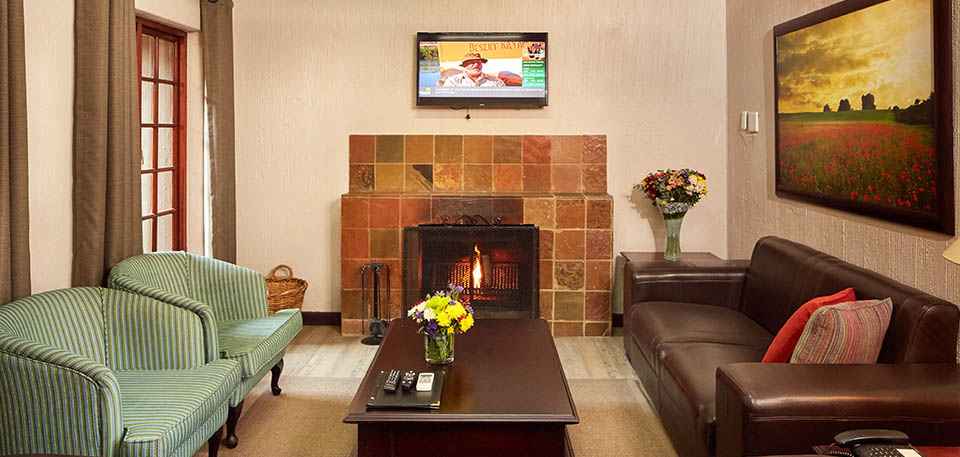 Our spacious, open-plan hotel rooms boast a king-size, extra-length bed, bar fridge, tea and coffee making facilities. The room features a small seating area with flat-screen television and double doors opening out onto a patio with a table and two chairs; two loungers and a Jacuzzi. All of the hotel rooms are air-conditioned and have an undercover parking bay.